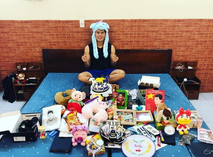 Trên instagram, Đình Trọng tự hào khoe bộ quà tặng chật kín giường do bạn bè và người hâm mộ gửi đến anh trong ngày sinh nhật. Trọng Ỉn hào hứng chia sẻ: “Những món quà đơn giản thật ý nghĩa. Cảm ơn mọi người đã luôn ủng hộ Trọng nhé” .Từ đồ ăn, tranh vẽ, gấu bông đến những món quà handmade đều thể hiện tấm lòng của người hâm mộ dành cho anh chàng.