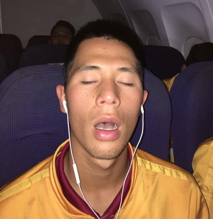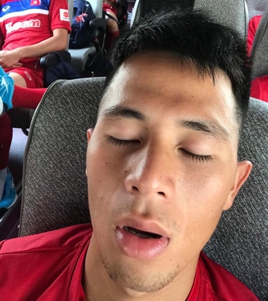 Tiếp tục series “chạm đáy nổi đau”, trung vệ Nguyễn Đại Đồng cũng góp ảnh dìm hàng Trọng “Ỉn” ngủ với khuôn mặt rất ngáo ngơ.