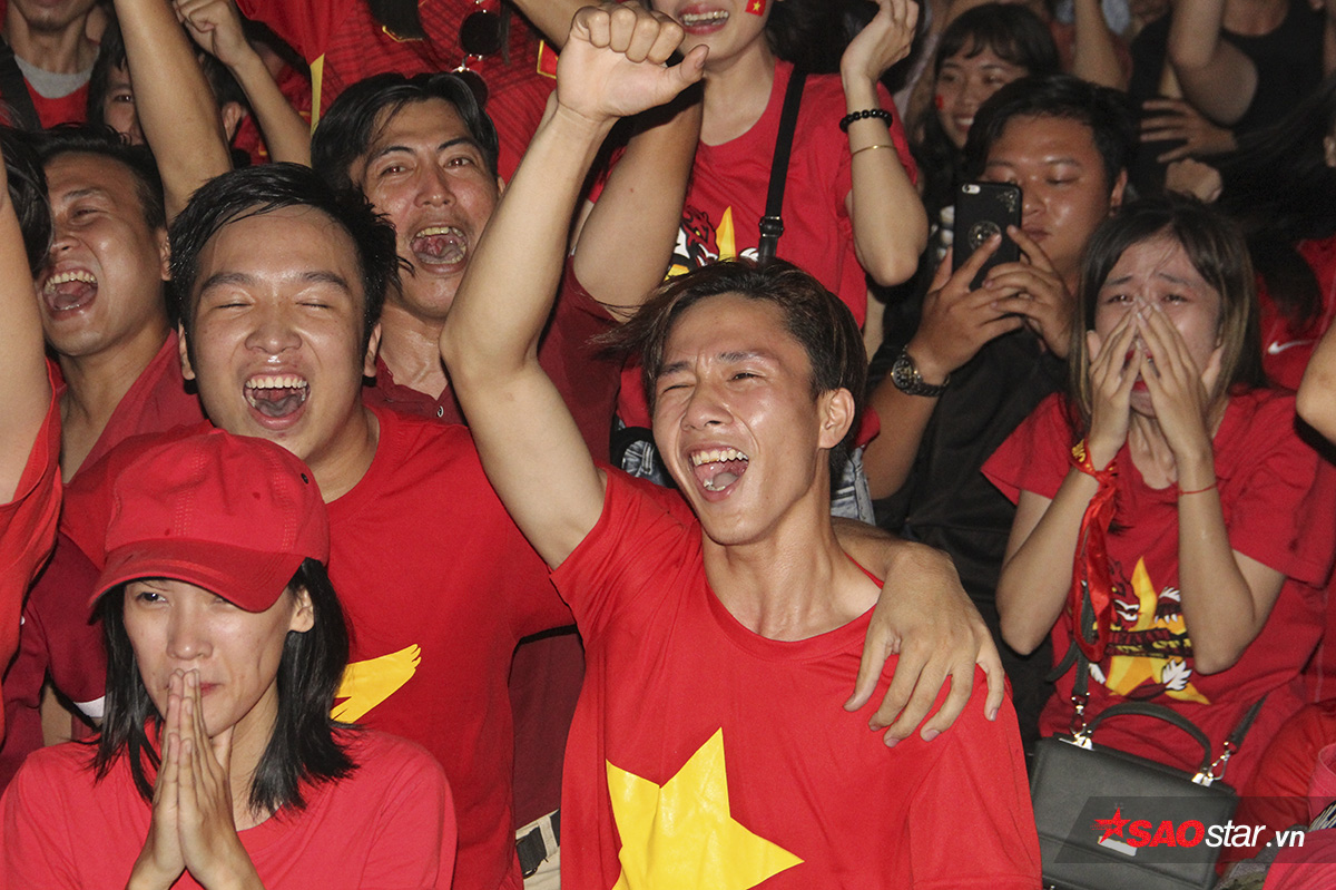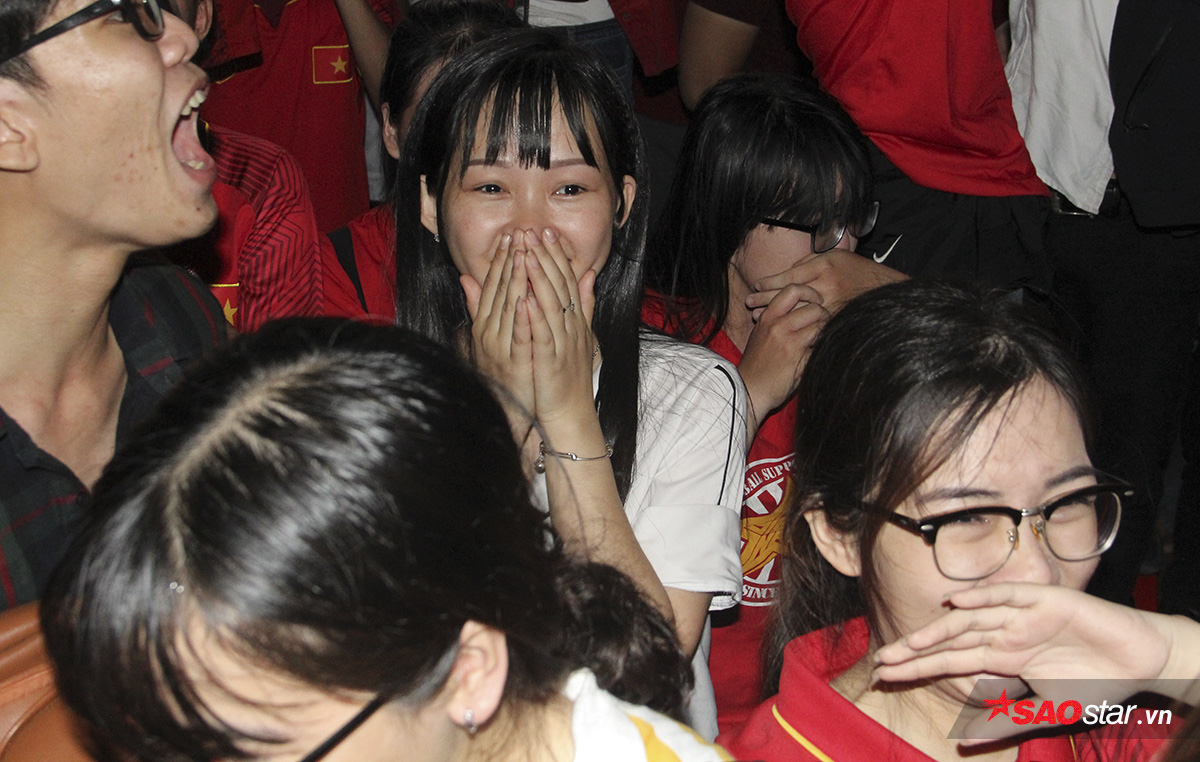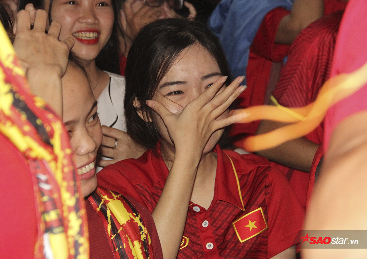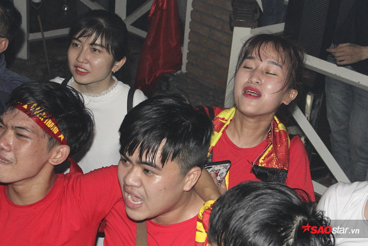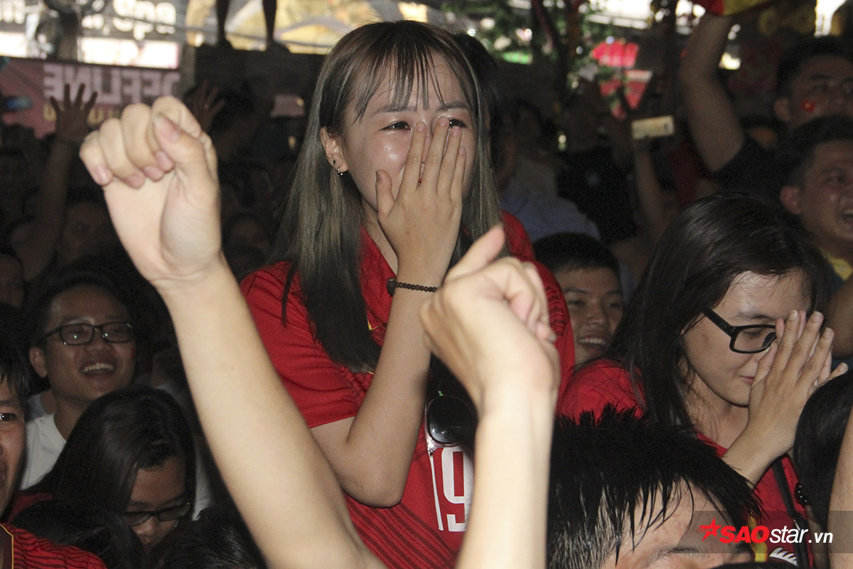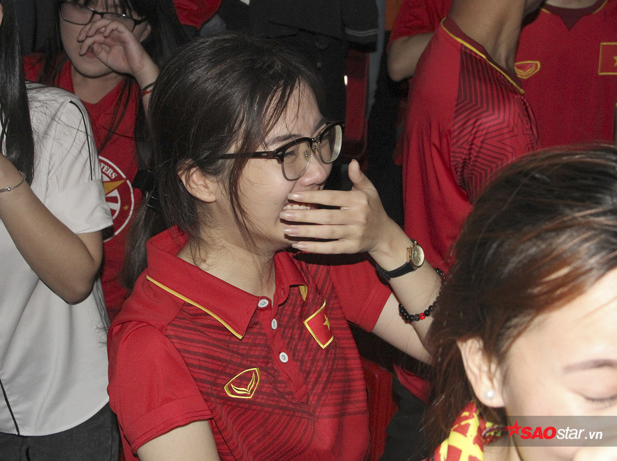 Fan nữ xinh ôm mặt, rưng rưng nước mắt trong giây chút chiến thắng.