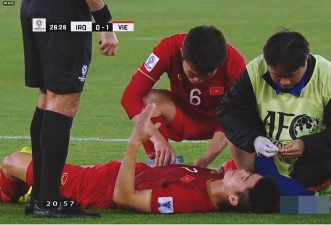 Trong trận đấu gặp Iraq tại vòng bảng Asian Cup 2019, một tình huống khiến nhiều người hâm mộ xót xa, đó là khi trung vệ Đỗ Duy Mạnh đã nằm trên sân sau một pha tranh chấp với cầu thủ đội bạn và lĩnh trọn cú giật cùi chỏ đằng sau của đối thủ.