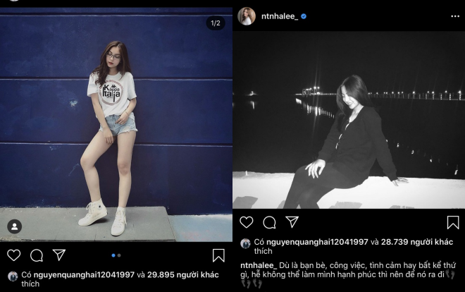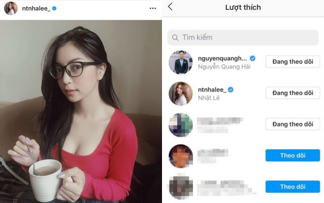 Thậm chí, trong 10 bức ảnh gần nhất của Nhật Lê, Quang Hải thả tim không sót bức nào. Trong 8 tháng cho nhau lối đi riêng, Quang Hải vẫn đều đều vào trang cá nhân của Nhật Lê để thả tim như một thói quen. Ngay cả sau khi bị cư dân mạng phát hiện cả hai đi ăn tối với nhau, tiền vệ này vẫn không ngần ngại thể hiện tình cảm với hot girl xứ Quảng.