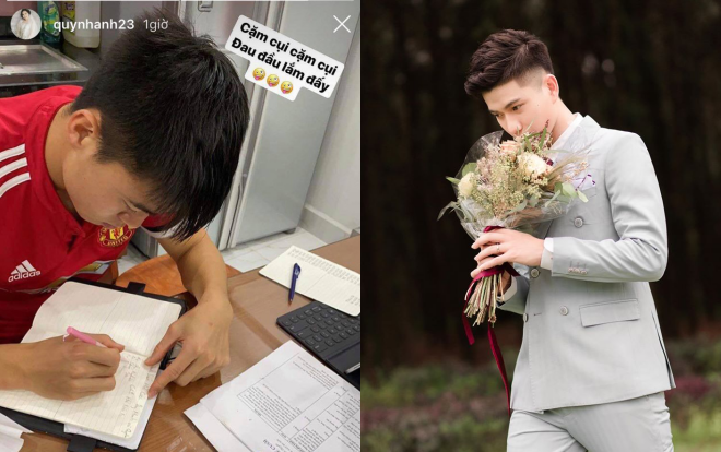 “Cặm cụi, cặm cụi. Đau đầu lắm đấy”, cô nàng Quỳnh Anh trêu Duy Mạnh.