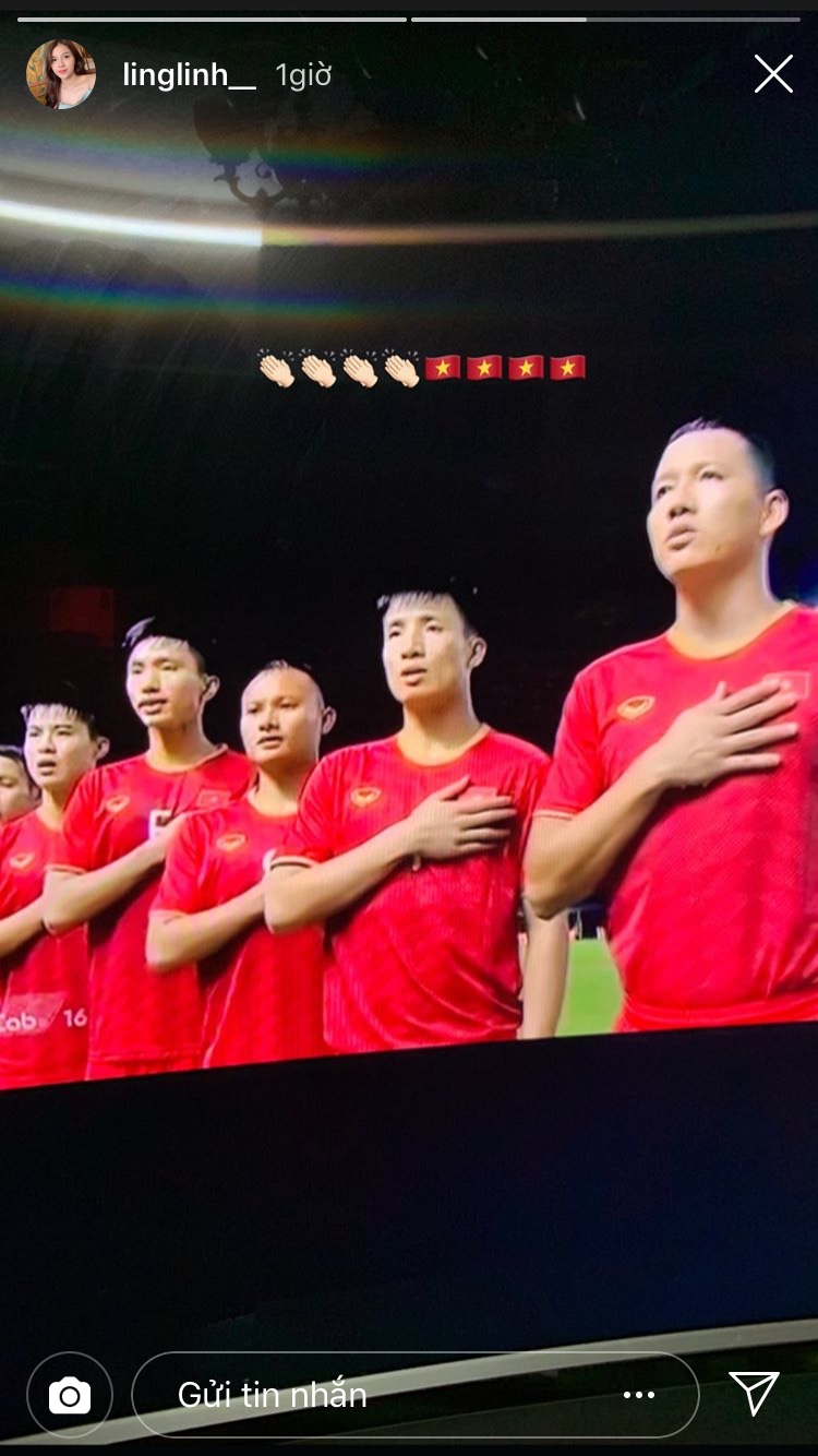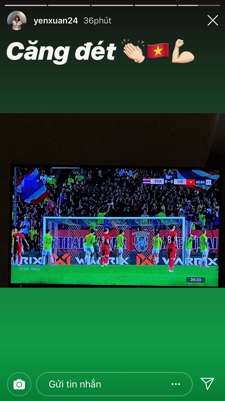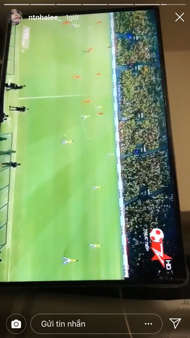 Không chỉ có Yến Xuân, Nhật Lê - bạn gái của Quang Hải cũng đang hồi hộp theo dõi trận đấu trước màn ảnh nhỏ. Các Wags của ĐTVN hiện có vẻ rất lo lắng cho các cầu thủ khi phải thi đấu ở xa và mình không thể đến theo dõi trực tiếp được.