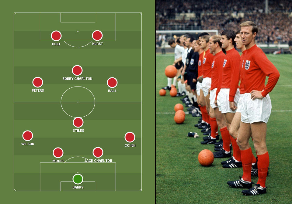 HLV Alf Ramsey nghĩ đến việc sử dụng sơ đồ 4-4-2 vì lúc đó ĐT Anh không có các tiền đạo cánh xuất sắc còn trung phong chủ lực Jimmy Greaves lại chấn thương.