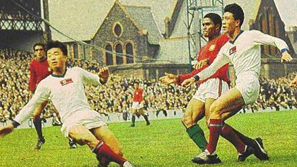 World Cup 1966 chứng kiến màn thể hiện thăng hoa của ngôi sao Eusebio của ĐT Bồ Đào Nha (áo đỏ, giữa) và các cầu thủ của ĐT CHDCND Triều Tiên (áo trắng).