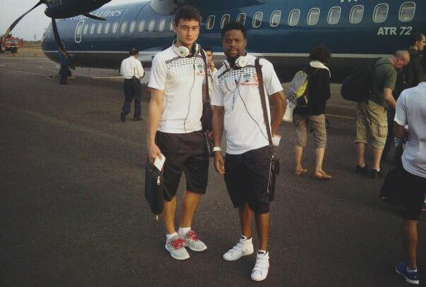 Văn Lâm (cầm ba lô) thời còn trong màu áo tuyển U19 Việt Nam.