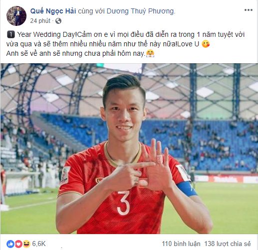 Trung vệ đội trưởng Quế Ngọc Hải là người đầu tiên sút thành công quả Penalty tạo tiền đề tâm lý cho các đồng đội ở những lượt sau. Chắc chắn, vững vàng, mạnh mẽ là 3 từ để nói về Hải Quế ngày hôm nay. Tân cầu thủ của CLB Thể Công cũng không quên kỷ niệm 1 năm ngày cưới cùng “hoa khôi xứ Vinh” Dương Thùy Phương.