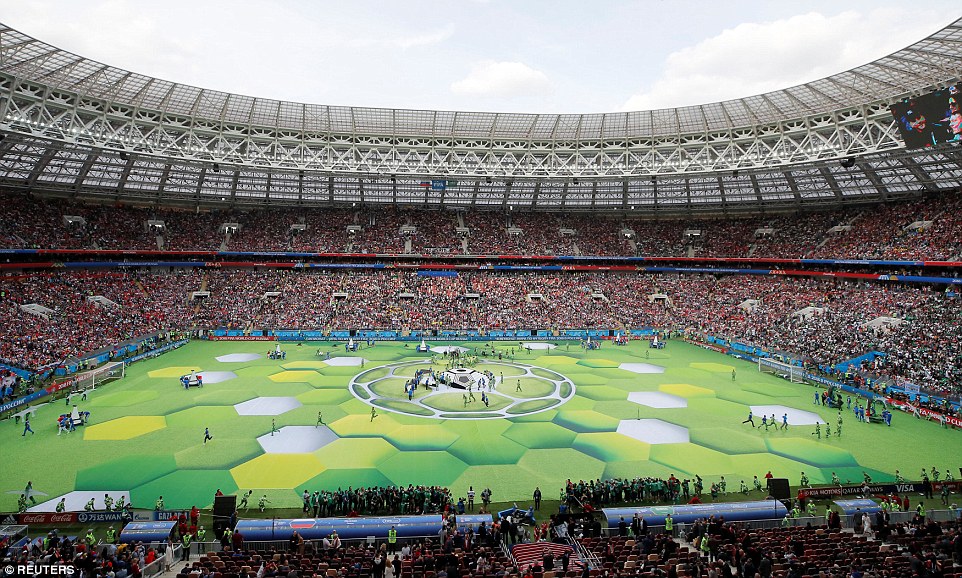 Hàng nghìn người có mặt tại sân vận động Luzhniki ở thủ đô Moscow chứng kiến lễ khai mạc World Cup nhiều màu sắc và hoành tráng của nước chủ nhà Nga. Tiếng kèn, trống rộn ràng vang lên khắp khán đài.