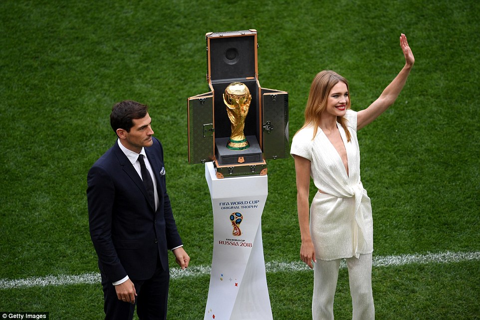 Thủ thành huyền thoại của Tây Ban Nha Iker Casillas mang chiếc cúp vàng tới sân Luzhniki.