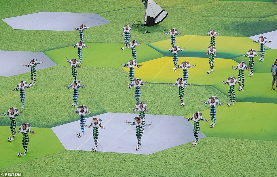 Các nghệ sĩ biểu diễn trước trận đấu bảng A giữa hai đội Nga và Saudi Arabia diễn ra ngay sau lễ khai mạc.