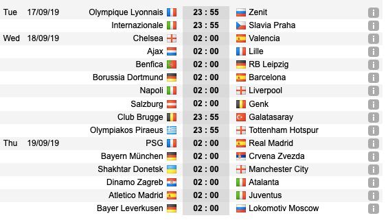 Bên cạnh đó, một số cặp đối hấp dẫn khác khiến nhiều người quan tâm như Atletico gặp Juventus, Dortmund chạm trán Barca. Những trận đấu của những đội bóng hàng đầu châu Âu phần nào giúp giải đấu danh giá nhất châu Âu kịch tính ngay ngày khởi tranh.