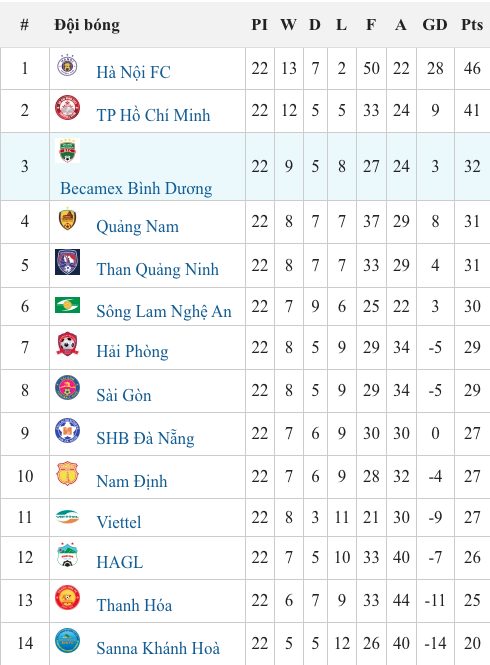 CLB HAGL đang ở trong một hoàn cảnh khó khăn khi phải đua trụ hạng. Sau 22 vòng đấu, đội bóng phố núi mới chỉ có 26 điểm và hiện đang đứng thứ 12 trên bảng xếp hạng. Họ chỉ hơn Thanh Hóa đúng 1 điểm và đội bóng cuối bảng Khánh Hòa 6 điểm.