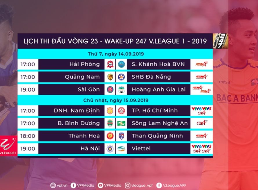 Dưới đây là lịch thi đấu vòng 23 V.League 2019: