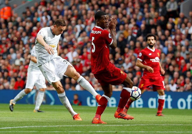 18′: Hàng thủ MU đang phải gồng mình lên chống đỡ các đợt tấn công của Liverpool.