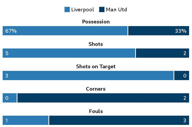 Liverpool kiểm soát bóng vượt trội so với MU.