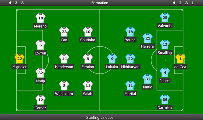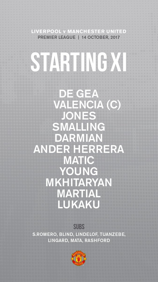 MU: De Gea, Young, Jones, Smalling, Valencia, Darmian, Herrera, Matic, Mkhitaryan, Martial, Lukaku.