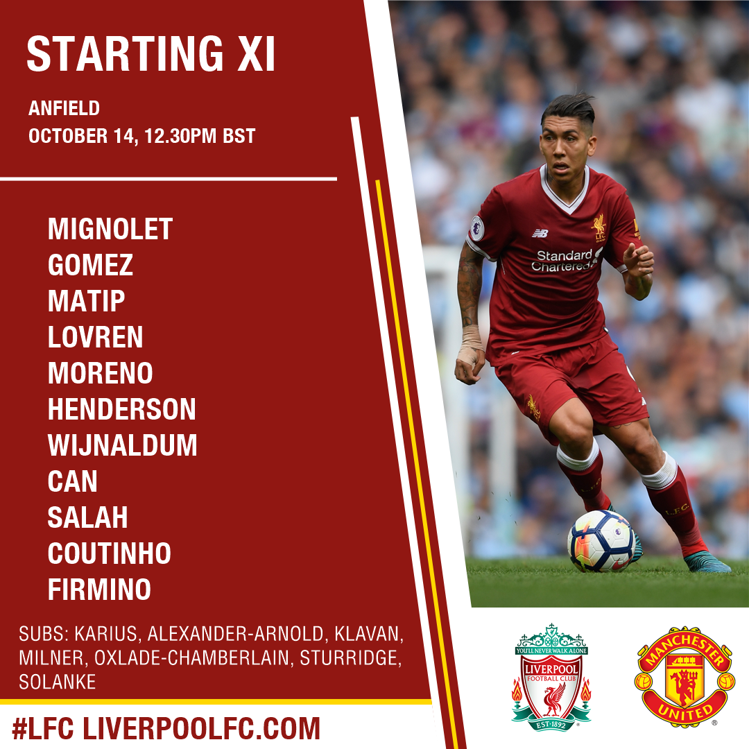 Liverpool: Mignolet, Gomez, Matip, Lovren, Moreno, Can, Wijnaldum, Henderson, Coutinho, Salah, Firmino.