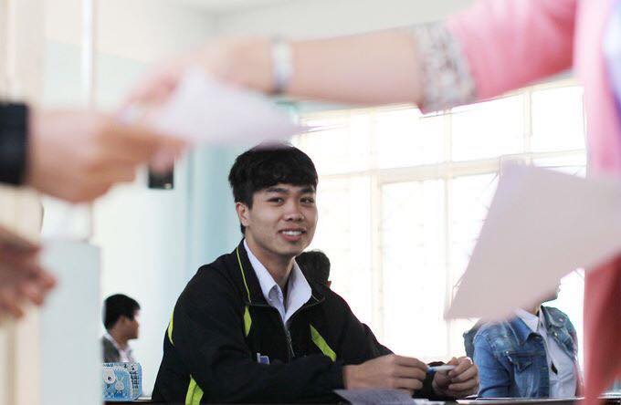 Khác với hình ảnh hiện tại của Công Phượng, mỗi khi xuất hiện được được fan hâm mộ và cánh báo chí săn đón, chân sút xứ Nghệ thời đó trông có phần hồn nhiên, đơn giản. Như bao bạn bè trang lứa, tiền đạo 24 tuổi cũng đi thi tốt nghiệp và làm bài trong tư thế “không kèn, không trống”. Hình ảnh Phượng “Núi” đứng lặng một góc cửa sổ nhìn giáo thị xếp chỗ ngồi khiến fan không khỏi thích thú.
