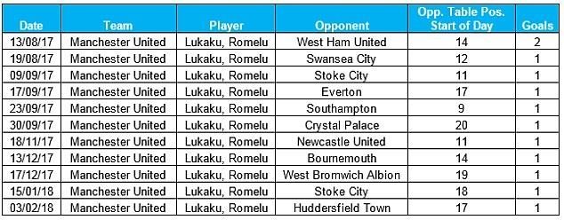 Thống kê cho thấy 12 bàn thắng tại Premier League mùa này của Lukaku chỉ vào lưới các đội bóng ngoài Top 6.