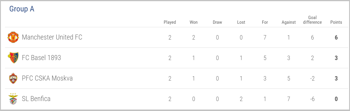Với chiến thắng đậm đà này, MU tiếp tục bao cao ở ngôi đầu bảng A với 6 điểm trong 2 trận toàn thắng. Trong khi đó, CSKA Moscow đứng thứ 3 khi có cùng 3 điểm với Basel nhưng thua về hiệu số phụ.