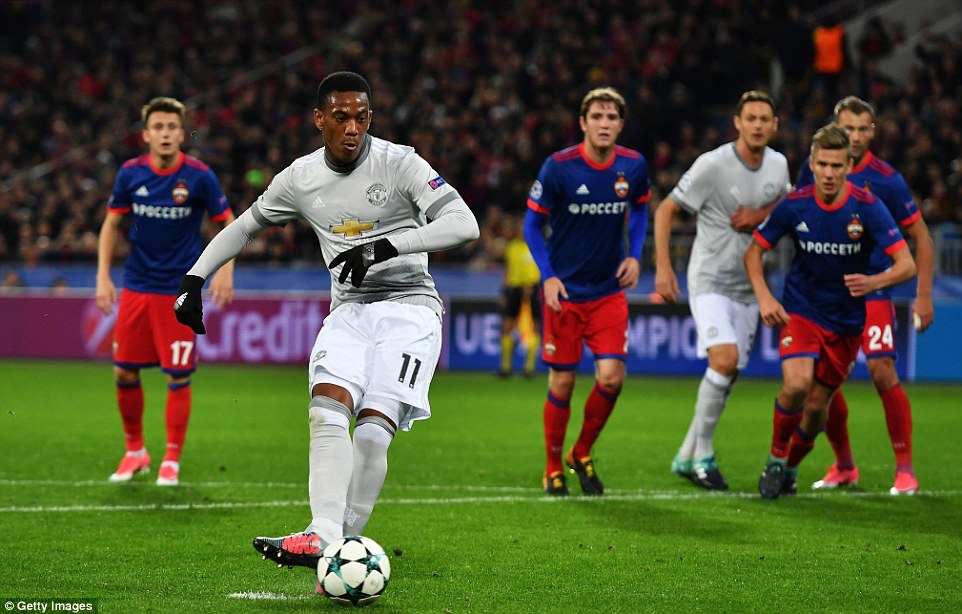 Đến phút 17, Schennikov kéo ngã Mkhitaryan khá thô trong vòng cấm khiến đội chủ nhà phải chịu quả phạt đền. Trên chấm 11 mét, Martial dễ dàng đánh bại thủ thành Akinfeev nâng tỉ số lên 2-0.