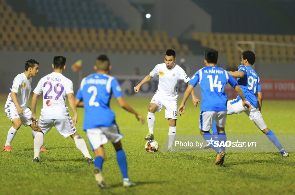 Dù chủ động chơi tấn công trong những phút đầu tiên và tạo ra được một vài cơ hội nguy hiểm nhưng Hà Nội FC cho thấy một lổ hổng cực lớn nơi hàng phòng ngự khi thiếu vắng Duy Mạnh và Đình Trọng.