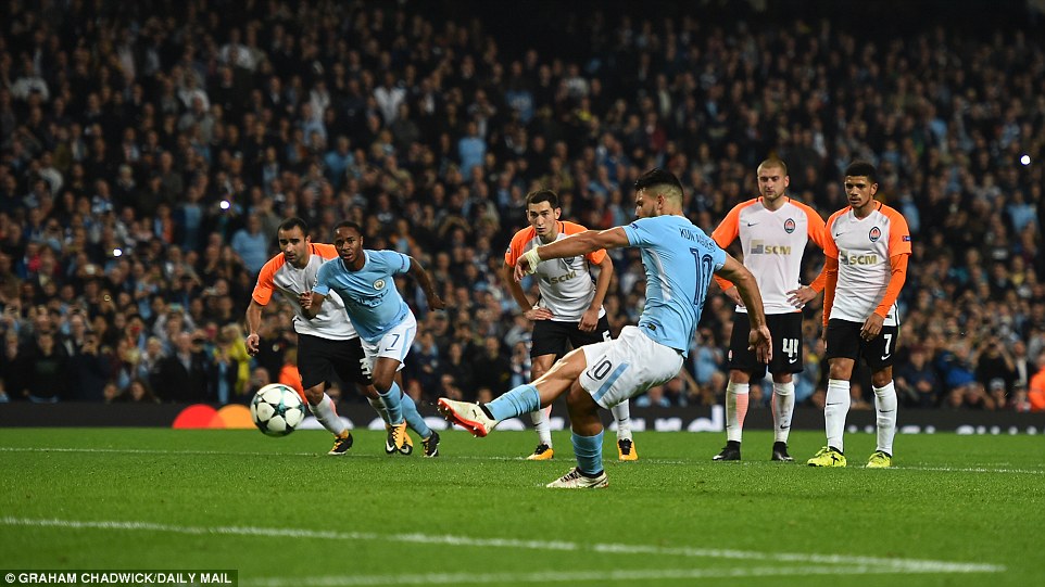Aguero đá hỏng phạt đền, lỡ cơ hội điền tên vào bảng điện tử.