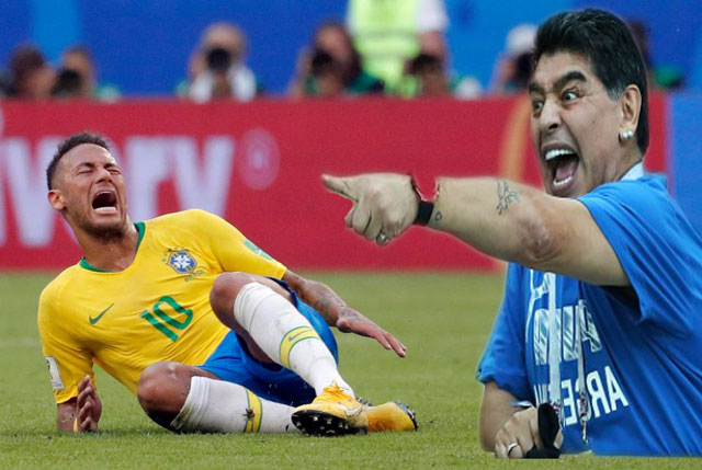 Maradona chỉ trích Neymar về thói ăn vạ.
