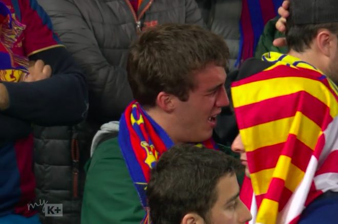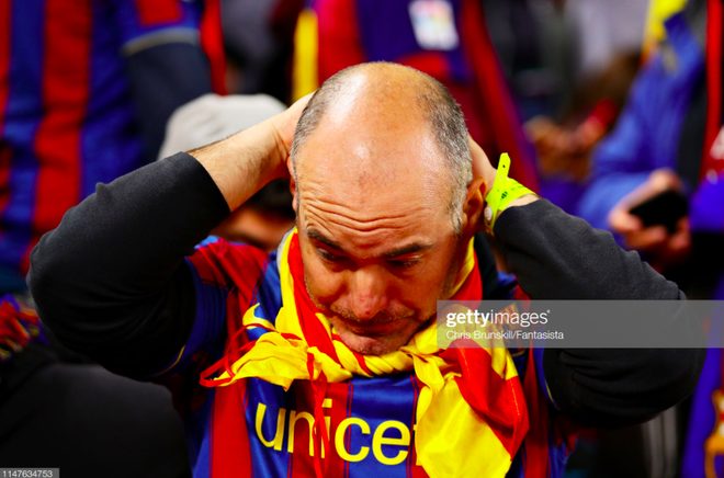 Các CĐV Barca chua xót, cay đắng, nghẹn ngào… Và họ chỉ còn cách duy nhất là khóc ngay trên sân.