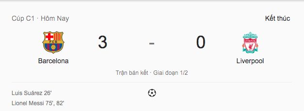 Mải mê trong việc tìm kiếm bàn thắng gỡ hoà, The Kop đã quên mất rằng Barca còn đó một thiên tài Messi có thể trừng trị mọi sai lầm. Hai bàn thắng của siêu sao Argentina vào các phút 75 và 82 đã nhấn chìm “con tàu đắm” mang tên Liverpool. Trong đó cú đá phạt thành bàn ở phút 82 đã thể hiện những gì tinh tuý nhất của Messi trong trận đấu này.