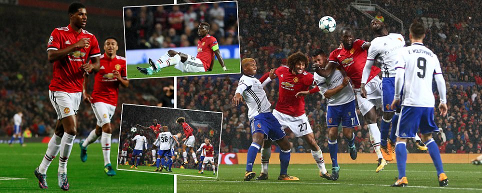Cơn mưa rất lớn tại Old Trafford không thể làm hạ bớt khí thế hừng hực được trở lại đấu trường Champions League danh giá của bầy “quỷ đỏ” sau một năm vắng bóng. Thầy trò HLV Mourinho tràn lên tấn công dữ dội sau khi tiếng còi khai cuộc cất lên. Trong khi đó, Basel sử dụng lối chơi áp sát và có phần hơi rắn để hạn chế các ngôi sao bên phía đội chủ nhà.