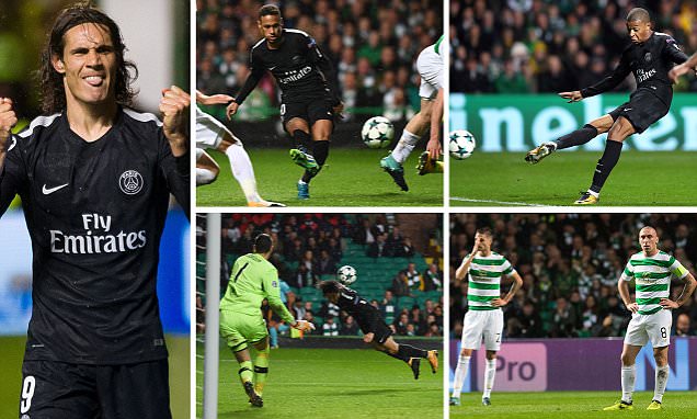 Neymar khởi đầu cho buổi tối ác mộng của đội chủ nhà Celtic bằng bàn thắng mở tỉ số ở phút 19 từ một pha đi bóng mạnh mẽ bên cánh trái bó vào trung lộ dứt điểm. Phút 34 đến lượt Mbappe thị uy bằng cú sút cận thành nâng tỉ số lên 2-0.