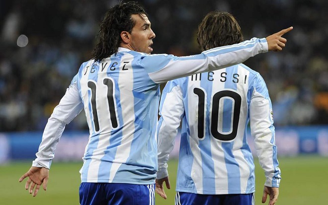Tevez từng sát cánh với Messi trong màu áo ĐTQG. Ảnh: Evening Standard.