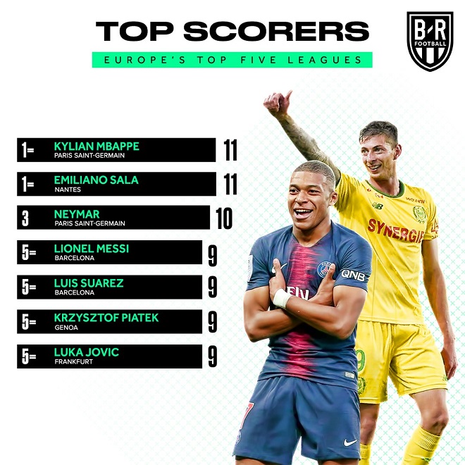 Thế nhưng, bất ngờ lớn nhất lại thuộc về một ngôi sao chẳng có chút tên tuổi nào. Tiền đạo Emiliano Sala thuộc biên chế CLB Nantes vươn lên ngang bằng thành tích với Mbappe khi cùng có 11 bàn thắng. Cuối tuần qua, Sala lại tiếp tục lập công. Tính riêng trong 4 trận gần nhất trên mặt trận Ligue 1, Sala đã ghi đến 7 bàn thắng, một hiệu suất kỷ lục dành cho một tiền đạo.