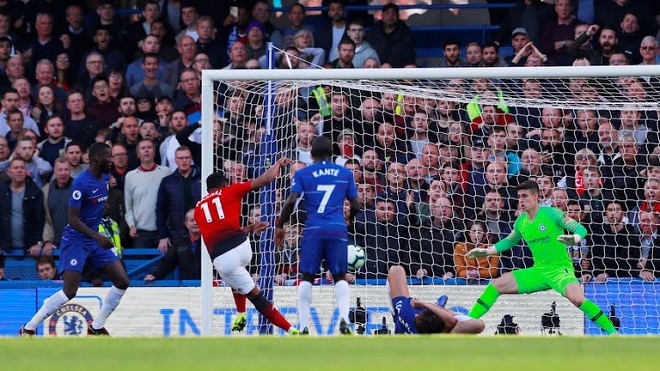 Phút 55, tận dụng một pha lộn xộn trước khung thành thủ môn Kepa Arrizabalaga bên phía CLB Chelsea, Martial tung cú sút cận thành san bằng cách biệt 1-1.