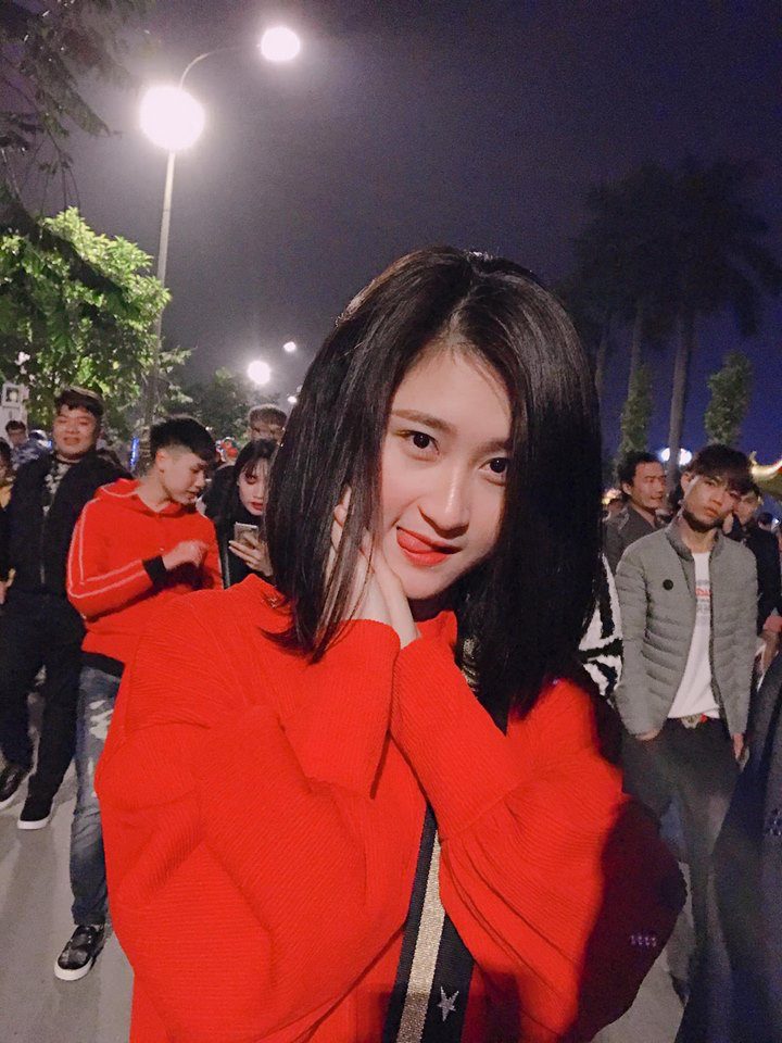 Thuỳ Dương cũng có niềm say mê bóng đá khi thường xuyên đến sân cổ vũ bạn trai.