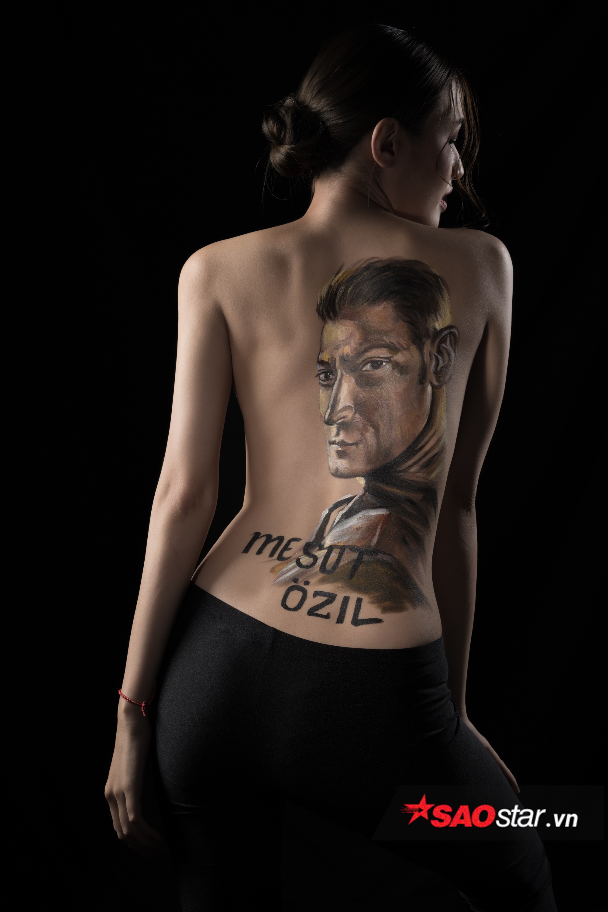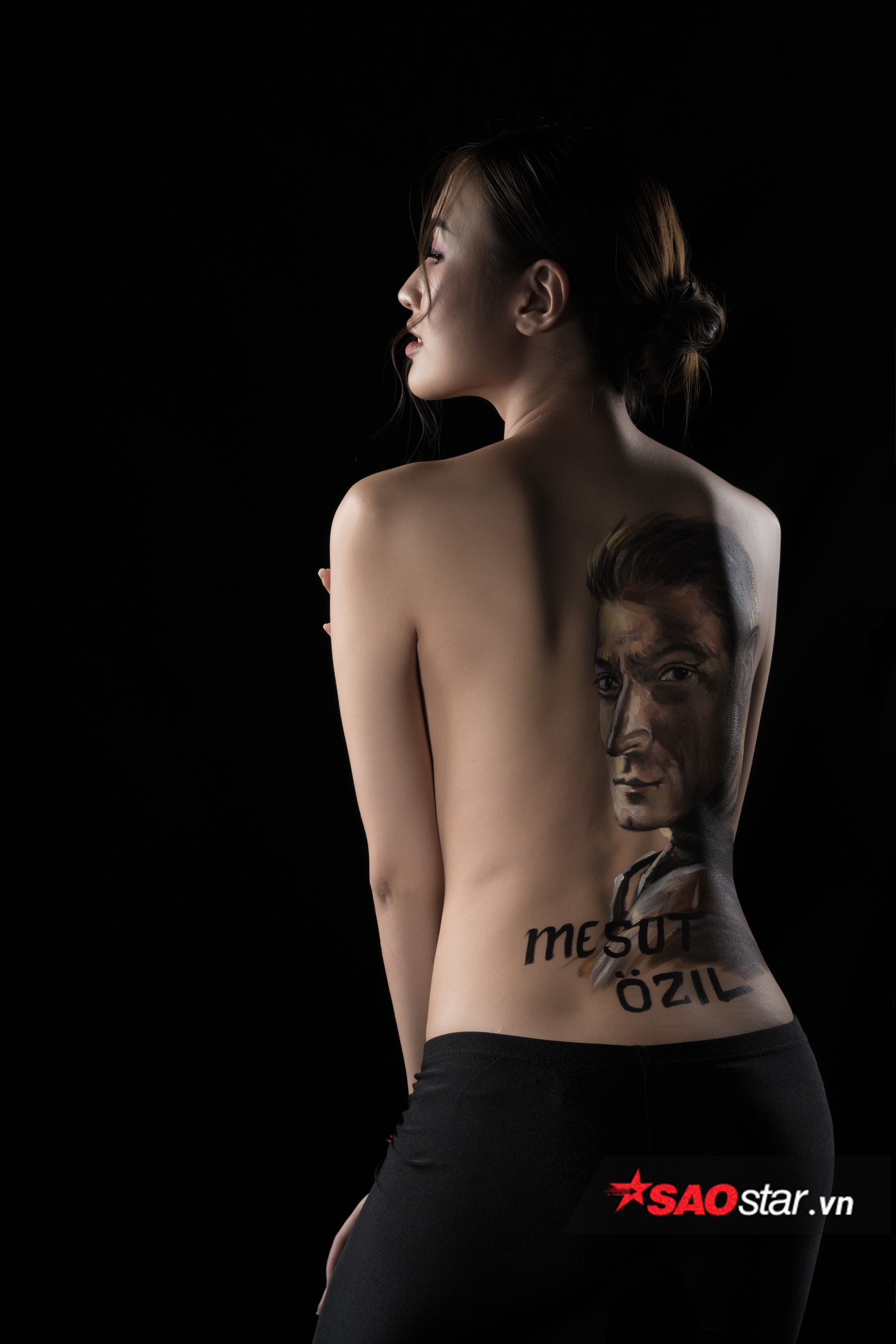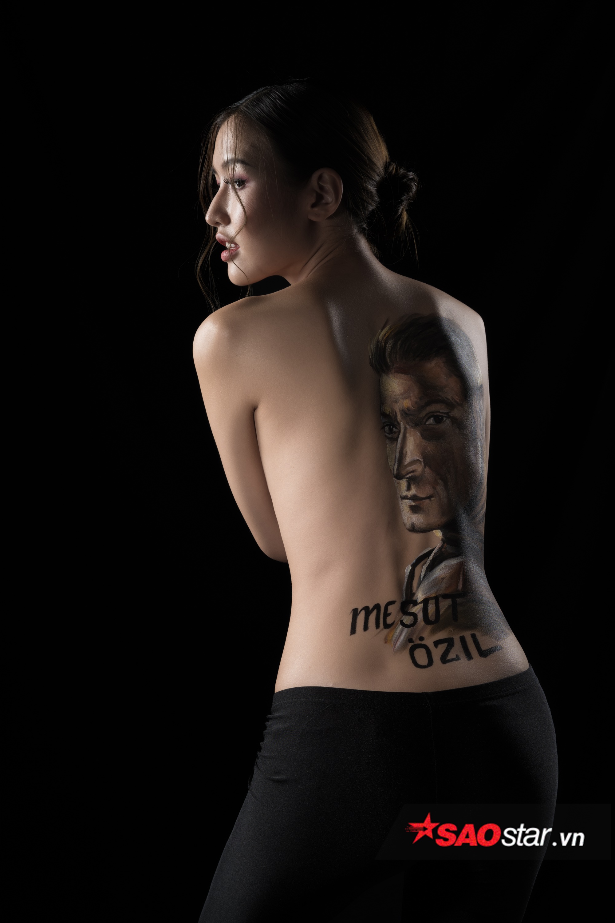 Nhằm có một màn cổ vũ ấn tượng, Phương Chi quyết định “cởi đồ” để chụp bộ ảnh body painting đầy gợi cảm, với hình Ozil được vẽ trên lưng trần và chiếc áo truyền thống của tuyển Đức. Phương Chi chia sẻ ê kíp giúp cô thực hiện bộ ảnh khá công phu gồm: body paint (Ngo Luc), người sản xuất (Đỗ Quang Minh), photo (Dong Hai Nguyen Ly), Make up (Jerry Nguyen).