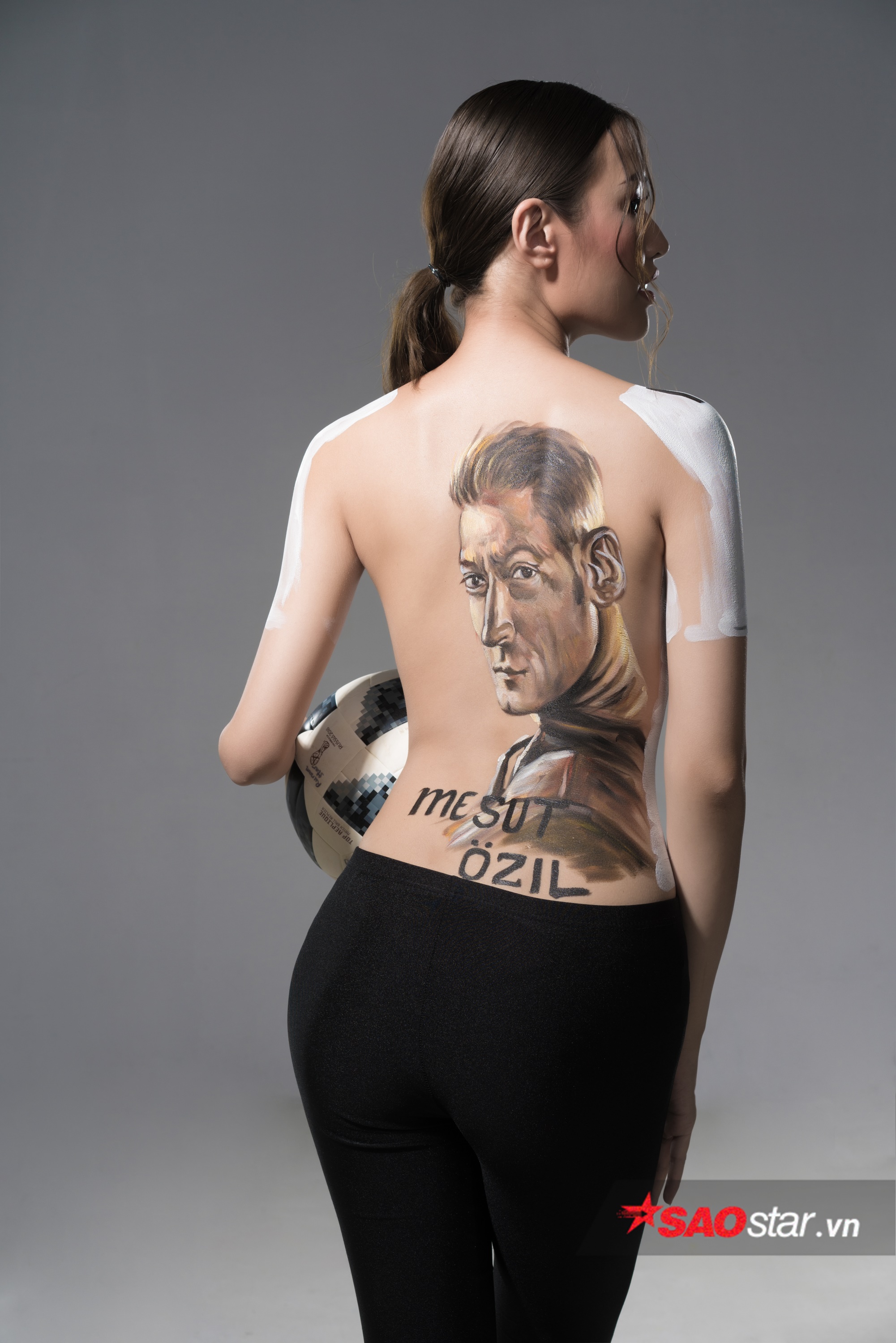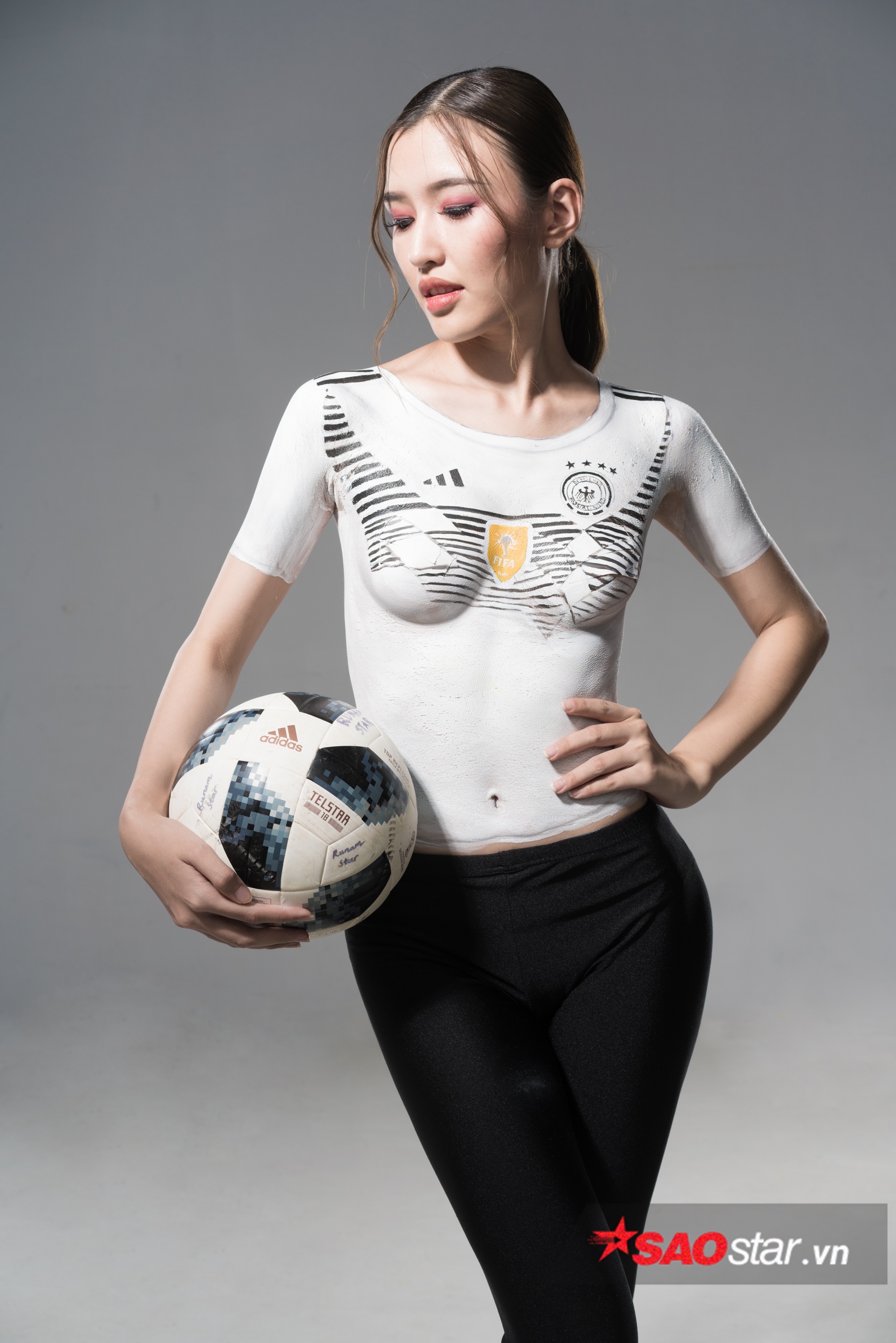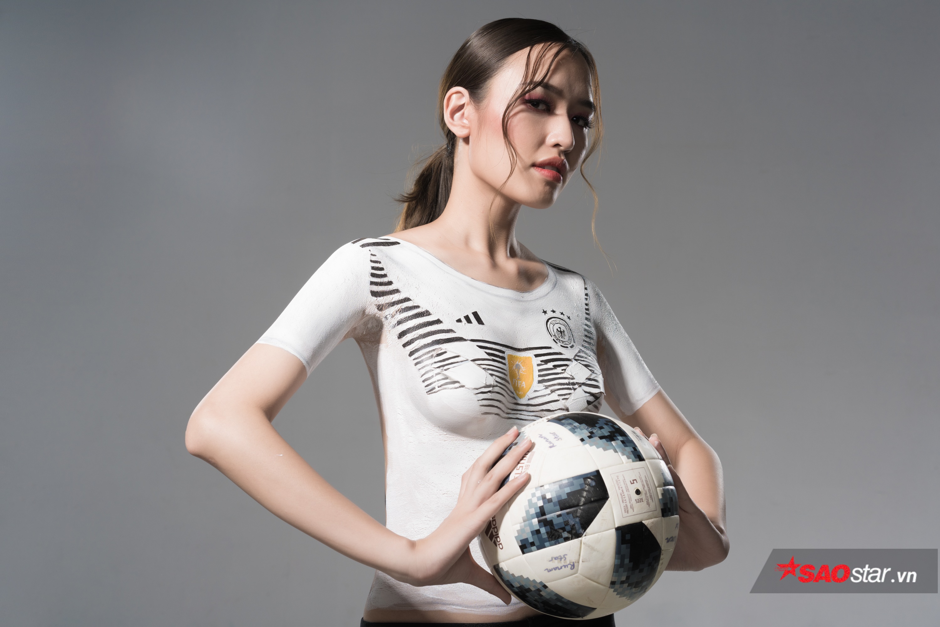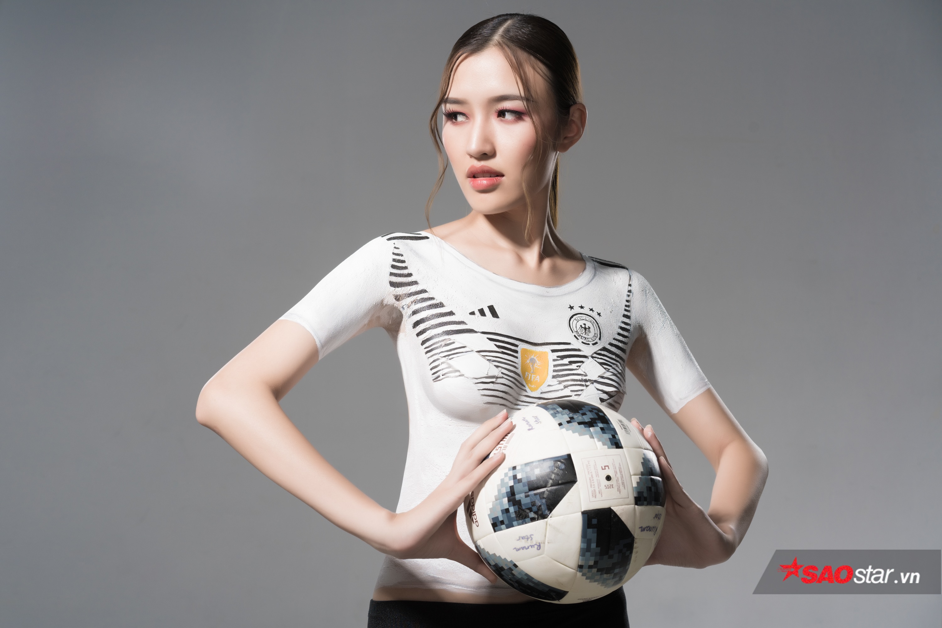 Phương Chi The Face khoe nhan sắc tuyệt đẹp với bộ ảnh body painting để cổ vũ cho tuyển Đức.