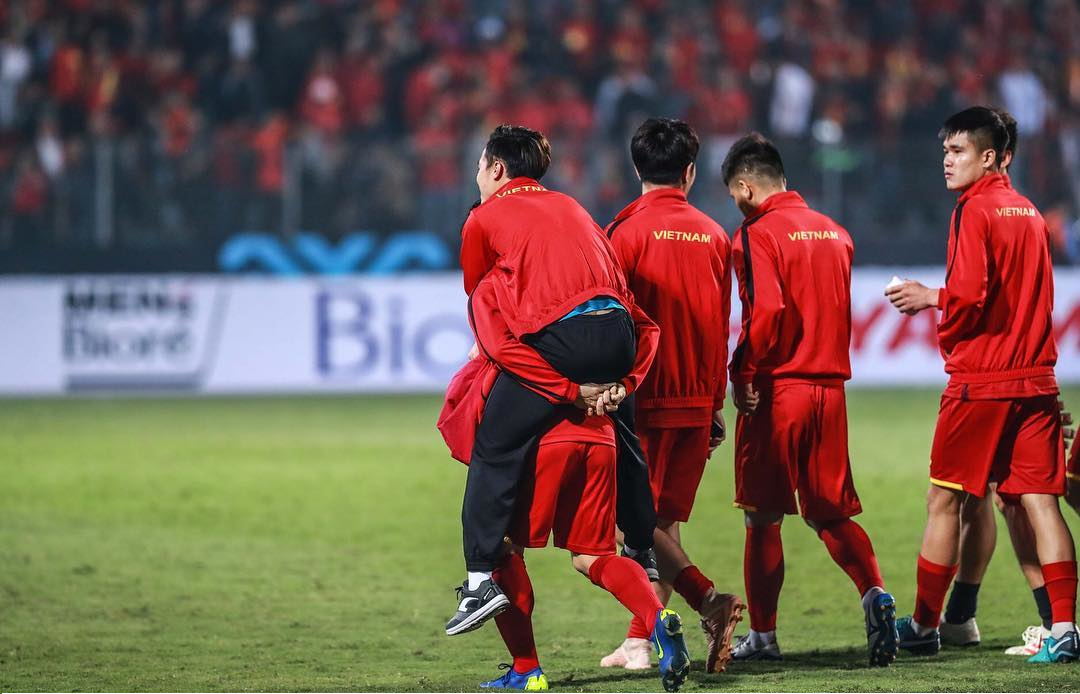 Nhưng có lẽ hình ảnh Công Phượng ân cần cõng Văn Toàn vào phong thay đồ với toàn đội là hình ảnh để lại nhiều cảm xúc nhất.