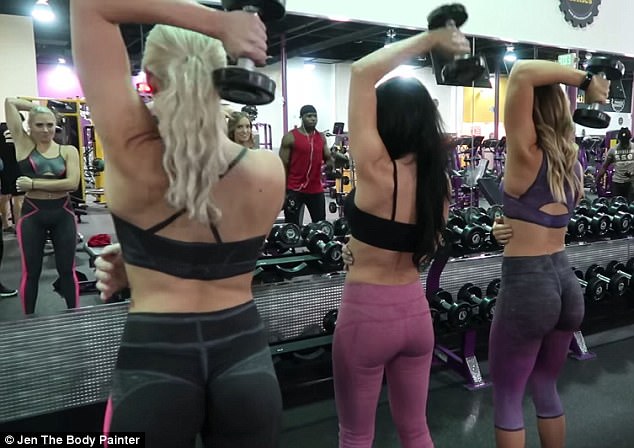 Cụ thể, hai chân dài nhờ họa sĩ vẽ một lớp sơn thành hình trang phục thể thao khiến những người tập cùng cứ tưởng như họ vẫn đang mặc đồ. Nhưng thực tế cả hai cô gái đều không có mảnh vải nào trên người.