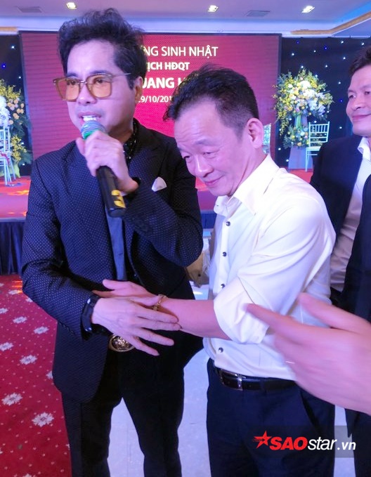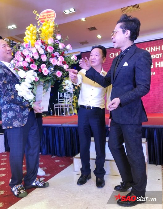 Với tình cảm dành cho bầu Hiển, danh ca Ngọc Sơn bận show diễn nhưng vẫn không ngại đường xa khi bay đến Hà Nội vào lúc 23h30 để góp mặt ở ngày sinh nhật bầu Hiển. Ngọc Sơn đón nhận tình cảm rất lớn của ông chủ CLB Hà Nội cùng tất cả doanh nhân có mặt tại buổi tiệc.