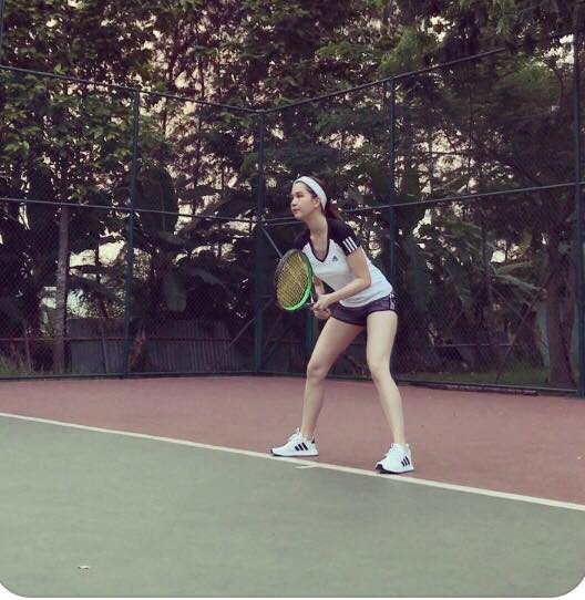 Tập tennis thường xuyên là bí quyết để Ngọc Trinh giữ dáng và có được vòng ba săn chắc.