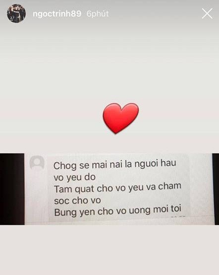 Tin nhắn được Ngọc Trinh tiết lộ với người tình bí mật nói đầy ngọt ngào.