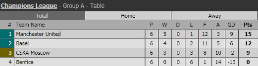 Những phút còn lại, MU chủ động giảm nhịp trận đấu và bảo toàn tỉ số. Ngược dòng chóng vánh sau 2 phút, MU đứng đầu bảng với 15 điểm. Trong khi đó, Basel lấy vé thứ 2 còn CSKA xuống Europa League.