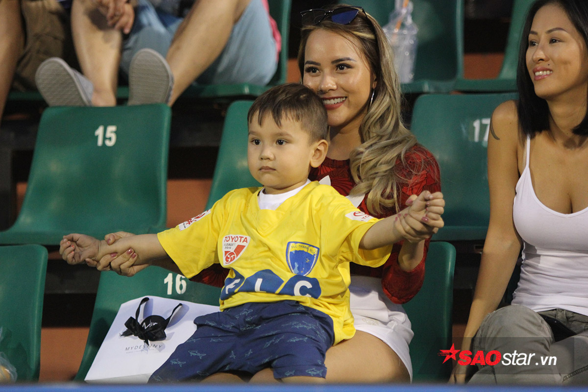 Nữ DJ xinh đẹp và cậu con trai liên tục “tiếp lửa” cho đội FLC Thanh Hóa mà chồng mình đang khoác áo.