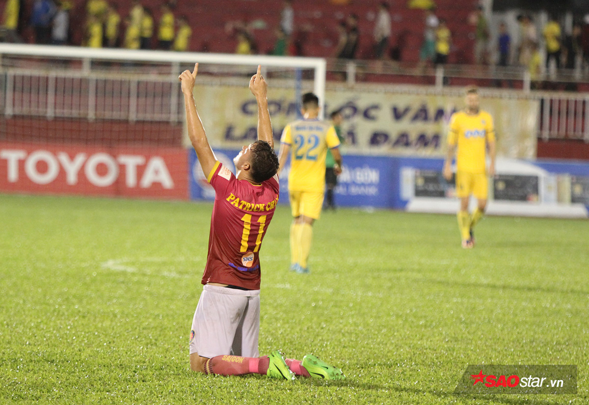 Các cầu thủ Sài Gòn ăn mừng sau trận.
