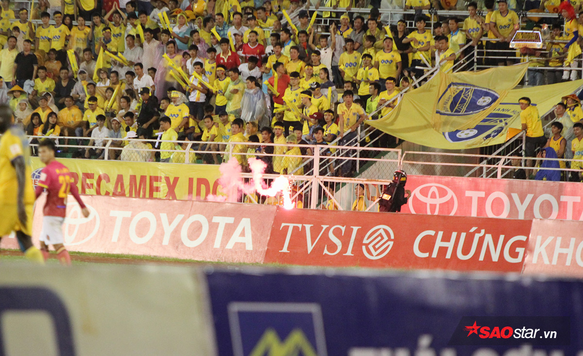 Đáng chú ý trong hiệp 2 của trận đấu này, hai quả pháo sáng từ khu vực khán đài B có đông CĐV Thanh Hóa bị ném xuống sân gây ảnh hưởng đến trận đấu.