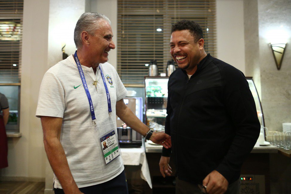 Ronaldo “béo” cùng HLV Tite. Ảnh: Twitter.
