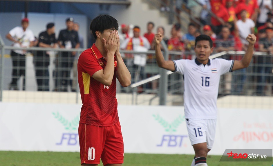 Hai sai lầm của thủ thành Phí Minh Long đẩy U22 Việt Nam vào thế cửa tử với 2 bàn thua trước U22 Thái Lan sau hiệp 1. Cơ hội của thầy trò Hữu Thắng được thắp lại khi Công Phượng đứng trước quả phạt đền ở phút 66. Công Phượng bước lên với ánh mắt đăm chiêu và cú dứt điểm vọt xà ngang.