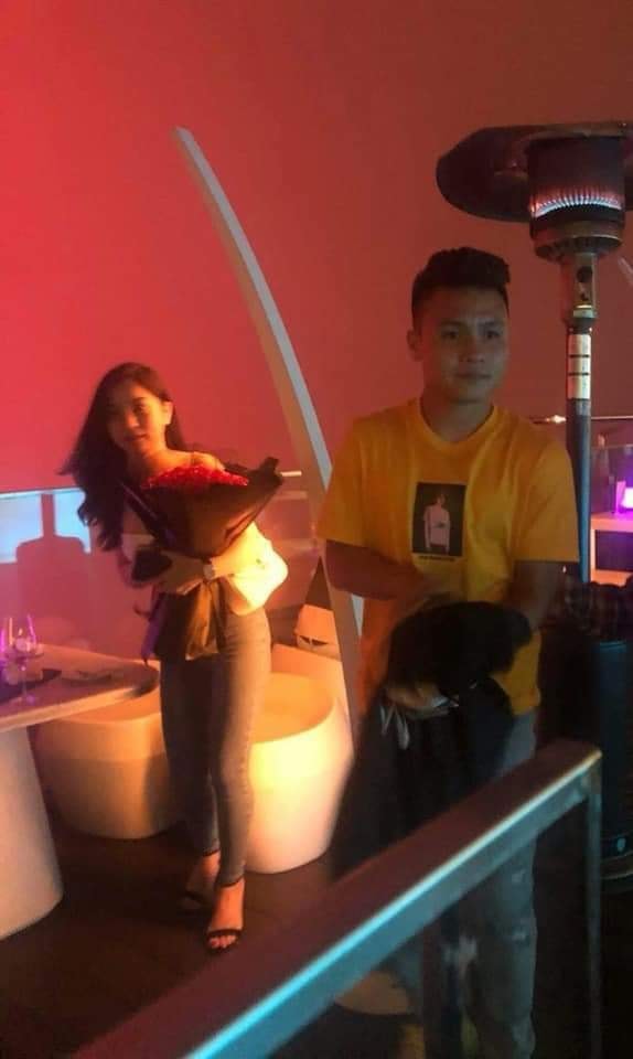 Bức ảnh cho thấy Quang Hải tặng hoa cho Nhật Lê.